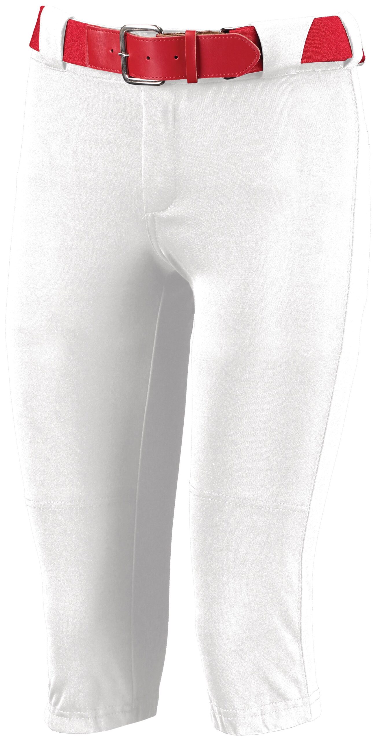CUSTOMIZABLE BRAIDS AVAILABLE * 11 ounce per linear yard, 100% polyester double knit * Ladies’ fit * “R RUSSELL” back left hip* Low rise, elastic waistband * Tunnel belt loops * Two-snap closure * Zipper fly * Two set-in welt back pockets * Reinforced knees * Knee length * Elastic cuffs