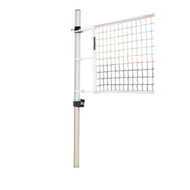 • Complete system includes:  Flat grey galvanized steel 3.5" posts, worm drive ratchet, pole pads (specify color), ground sleeves with floor plates, universal VB net, antennas, judges stand and judges stand safety padding (specify color)