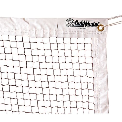 This competition quality net is made from weather treated knot less nylon netting. The headband is a white heavy duty vinyl. The net is burgundy. A 1/4” poly rope cable runs through the top. The bottom and side tapes are vinyl coated.