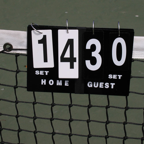 Portable scorecard that sits on top of the net.